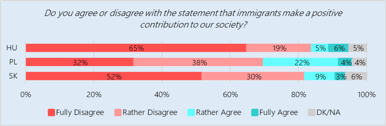 A politikai kommunikáció kereszttüzében álló témák, mint például a bevándorlás, nagyobb elutasítottsággal bírnak a fiatalok körében. A három ország fiataljai 70-84% százalékban nem értenek egyet azzal az állítással, hogy a bevándorlás lehet jó hatással az adott ország társadalmára.