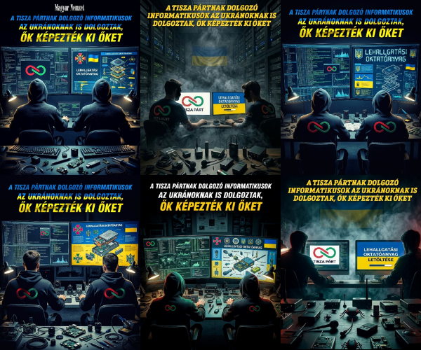 Az alábbiakban láthatják a négy képsorozatot, amelyek a 2026. március 22-25. között a Magyar Nemzet és a Mediaworks-hálózat megyei lapjainak Facebook-oldalain koordináltan megjelent AI-generált illusztrációk mutációit tartalmazzák. Minden sorozatnál jól kivehetően beazonosíthatjuk a szöveges narratívát is, amelyet a képek vizuálisan közvetítenek, valamint a bejegyzések publikálásának pontos időpontját, ez utóbbi szemlélteti a közzététel összehangoltságát.