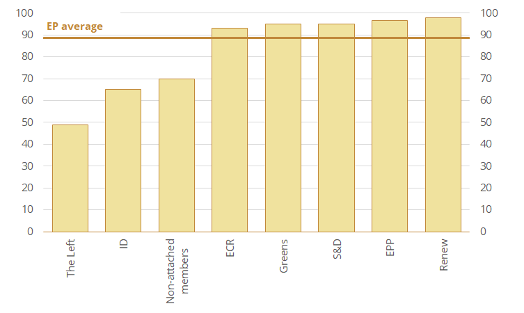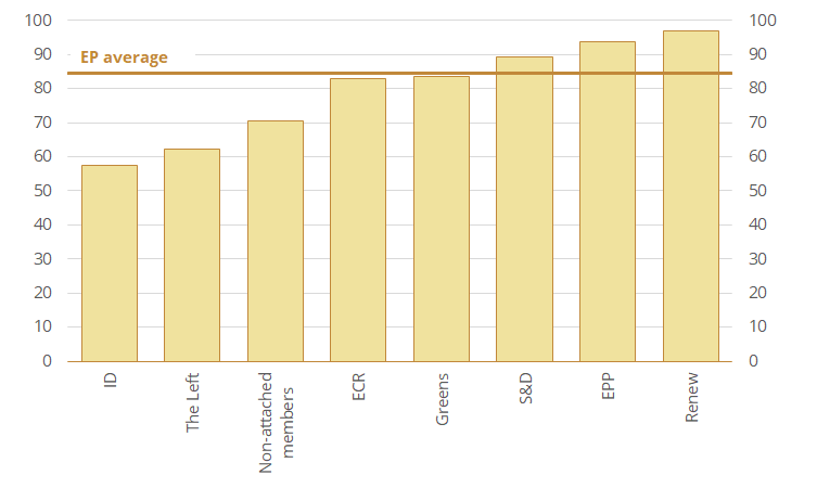 Figure 6 The Common Foreign Policy Index scores of EP groups.