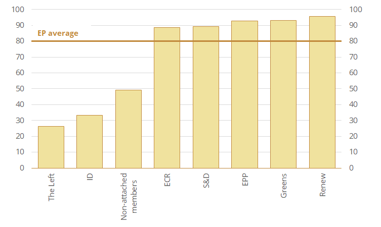 Support for action against authoritarian regimes outside of Russia and China was often almost unanimous. More than 80% of MEPs backed resolutions targeting the regimes of Alexander Lukashenko and Bashar Al-Assad. Over 90% of them supported texts condemning authoritarian practices in Chad, Haiti or Pakistan. At the same time, even mainstream parties refrained from condemning regimes “ideologically closer” to them: Members of center-left groups did not always back texts criticizing far-left regimes, such as Cuba, while right-wing groups sometimes avoided criticism of states led by rightist governments and policies that fit their own political agenda (e.g., regarding migration).