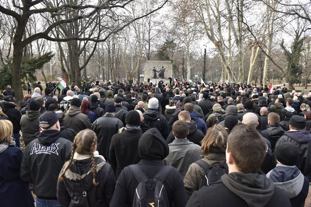 A szélsőjobboldali szervezetek körében a hónapban kiemelt szerepet kaptak a február kilencedikei úgynevezett „becsület napi” megemlékezések, melyre az elmúlt évekhez hasonlóan – a hazai mozgalmakon kívül – számos európai országból érkeztek szélsőséges szervezetek. Budapesten több ponton gyülekeztek neonáci, hungarista és más szélsőjobboldali csoportok, hogy az 1945-ös kitörési kísérletről megemlékezzenek. Mivel a BRFK korábban úgy határozott, hogy az esemény „a külső szemlélőben félelemkeltésre, riadalom okozására” alkalmas, ezért a Kapisztrán tér helyett a Városmajorban tartották meg az eseményt. Nemzeti és Árpád-sávos lobogókkal vonult ki a Vér és Becsület, a Hatvannégy Vármegye Ifjúsági Mozgalom (HVIM), a Légió Hungária, a Betyársereg és a Magyar Önvédelmi Mozgalom (MÖM) is. Feltűnt néhány más szélsőjobbos mozgalom jelképe is. A nemzetközi szélsőjobboldali mozgalmak közül megjelent például a Vlaszovista mozgalom Oroszországból, illetve a svéd Nordic Resistance Movement (NRM) nevű pánskandináv neonáci mozgalom, a németországi Die Rechte párt, a francia újnáci FDF mozgalom, valamint német beszámolók szerint a Club 28 Serbia, az ukrán C14 paramilitáris szélsőjobboldali szervezet, és cseh, bolgár, norvég és olasz szélsőségesek is. Beszédet mondott többek között Simon Lindberg, az NRM vezetője, és a Die Rechte képviselője, Matthias Deyda is. Simon Lindberg méltatta azokat, akik szembeszálltak a „vörös hordával”, majd heves iszlámozásba kezdett. Kiderült, hogy a magyar szervezők jogászok bevonásával az utolsó pillanatokig cizellálták az angol nyelvű szöveget, hogy az ne ütközzön jogszabályokba. Matthias Deyda arról is beszélt a jelenlévőknek, hogy a „holtak dicső tettei örökké élnek”, és hogy 1945. május 8-ával az „eszme nem halt meg”. A nemzetárulók ideje – jelentette ki – meg van számlálva. Majd Incze Béla, korábban a HVIM társvezetője, idén már a Légió Hungária vezetőségi tagja beszédében kifejtette, hogy „alkut nem ismerve” kell szembeszegülni a modern világgal, hisz „nem lehet eltiporni a nacionalista gondolatot”. Cseh nemzetiszocialisták, németek és a francia újnáci FDF mozgalom tagjai is felszólaltak. A franciák képviselője arról beszélt, hogy a mai harc a „balosok, nemzetközi zsidóság és szabadkőművesség által szervezett erőltetett bevándorlás”, amely ellen a „fehér fajnak” fel kell lépnie.