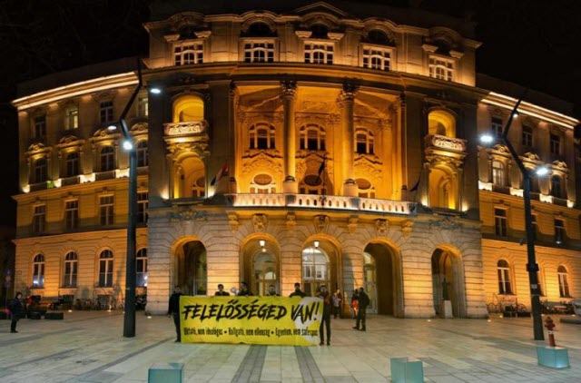 Fotó: Az IG akciója az ELTE ÁJK épületénél. Forrás: generacio.eu