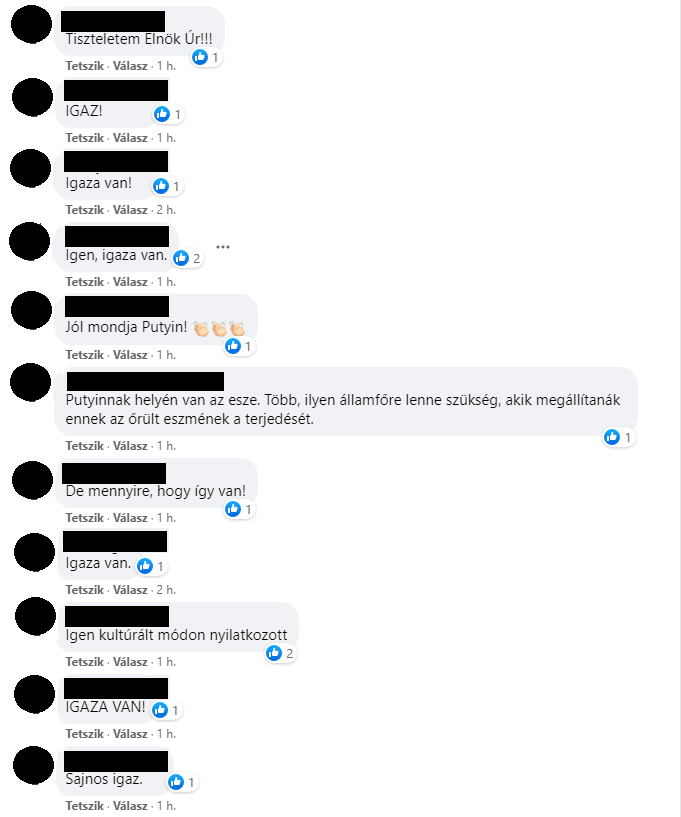 Ezek alapján egyértelmű, hogy a Putyin szavait taglaló bejegyzés alatti aktivitás egy része nem organikus, ahogy a kommentelő felhasználóknak sem mindegyike takar valós személyt.