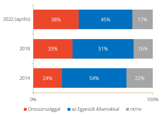 A Fidesznek fokozatosan sikerült egyre oroszpártibb, egyre Nyugat-ellenesebb irányba terelnie választói attitűdjét. Míg 2014-ben még a Fidesz szavazóinak többsége az Egyesült Államokkal való együttműködést preferálta Oroszországgal szemben, addig 2022-re ez drámaian megváltozott: már csak 24%-uk választaná az Egyesült Államokkal való együttműködést, 55% inkább Oroszországgal partnerkedne. Úgy tűnik, hogy a Fidesz Nyugat-ellenes narratívája jelentős hatást gyakorol a magyar társadalomra, bár a magyarok túlnyomó többsége még mindig támogatja az ország EU- és NATO-tagságát.