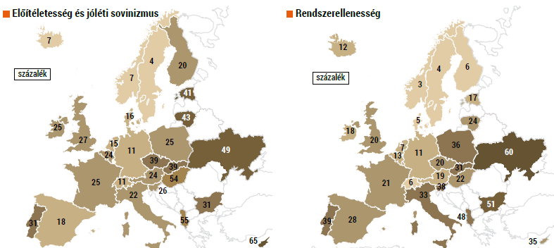 A legfrissebb, 2016-ban publikált eredmények szerint az európai országok többségében egyértelmű növekedést mutat az idegenellenesség és az EU-ellenesség.