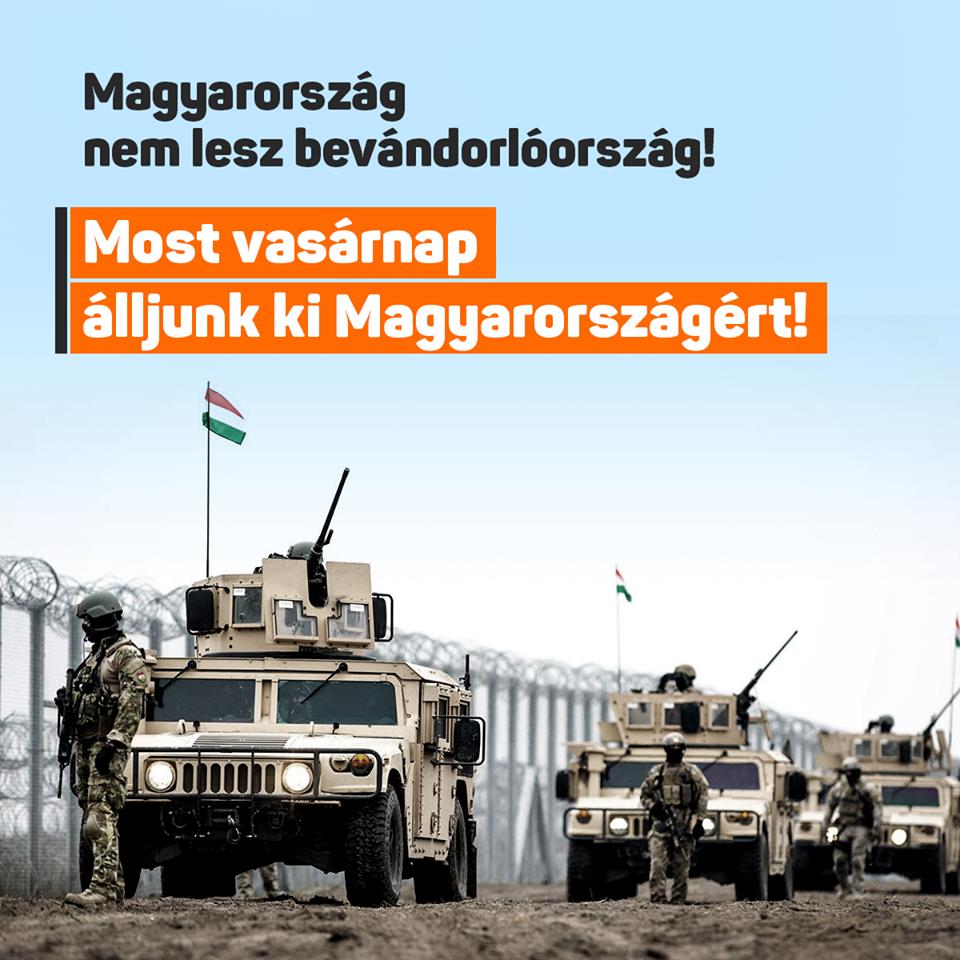 The meme and message reads: Hungary will not become a migrant country! Support Hungary this Sunday!/ Opposition mayors and candidates would resettle immigrants into the country. We can put an end to it at the Sunday municipal elections. Vote for Fidesz’ candidates! Source: Fidesz Facebook account