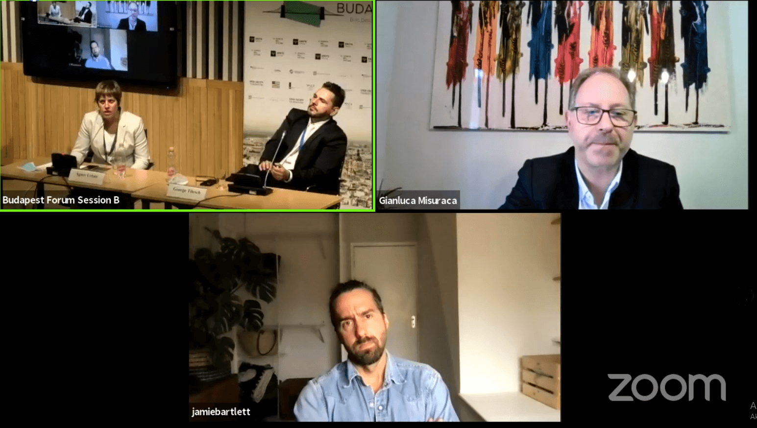 First, panelists noted that although social media platforms are causing challenges, they were not conceived with an evil intent. George Tilesch said that Mark Zuckerberg does not strive for world domination, he simply created a highly sophisticated monitoring and micro-targeting advertisement system and while social media platforms came with a “side effect” of connecting people, they were certainly not intended or designed to become public spaces to discuss our common issues. George Tilesch believes that the business models of these platforms are completely incapable to serve the public interest because they were created with the sole purpose of making money. The fact that we use these platforms for political discussion is only making it worse and concentrating even more power in the hands of a very small group. Gianluca Misuraca added that the business sector is not inherently evil, but it has its own interests. When these systems were created, we still thought that human and civic thinking was rational. We now know that this is not the case at all. Jamie Bartlett thinks that knowledge of human nature is key here. We need to admit that our own biases are much stronger than anything Google can create. Gianluca Misuraca pointed out that while everyone is talking about the negative side of social media, he tries to see the good in it. He believes that social media platforms have great potential for providing information and reaching the public more efficiently. The COVID19 pandemic showed us the threats we face on these platforms, but he continues to be an optimist regarding the possibilities technology can provide us with.