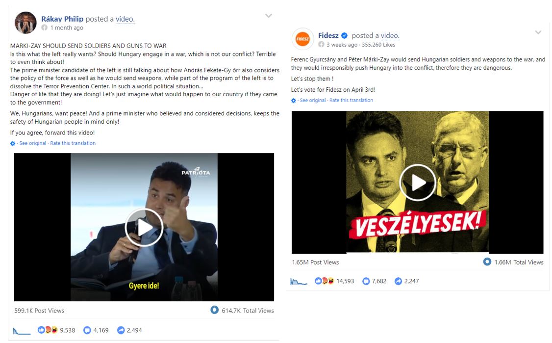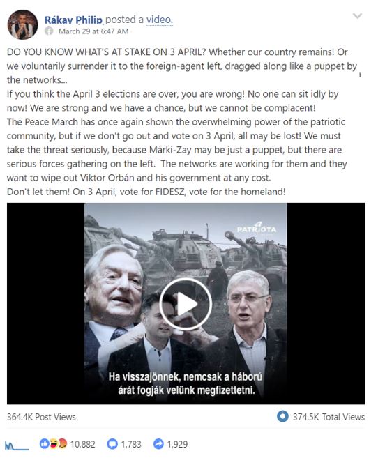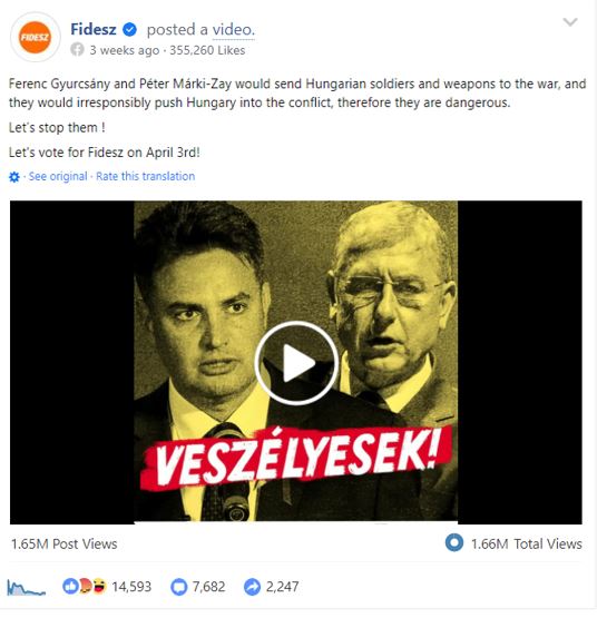 Facebook video by Fidesz, containing disinformation narratives about the opposition; Source: Crowdtangle
