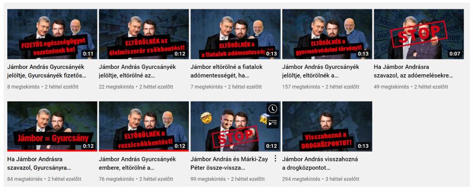 A selection of videos from the YouTube channel "Not Jámbor", created to discredit András Jámbor